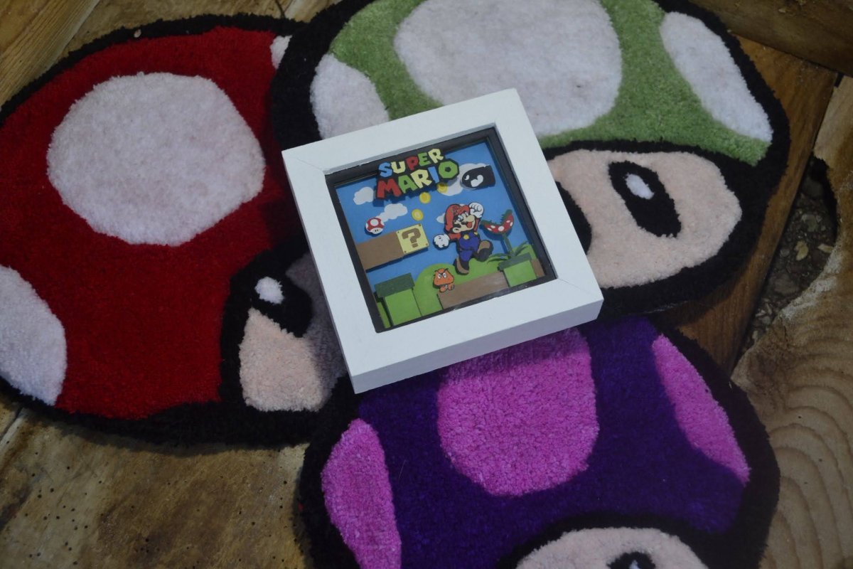 Je fais des tapis en Tufting que je décline également en sac, en cadre et en portes clé. Je m'essaie également au Punchneedle.