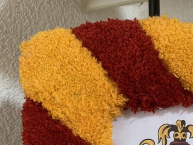 Cadre photo fait en tufting à l'effigie de la maison Gryffondor de l'univers "Harry potter"