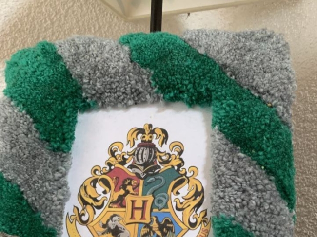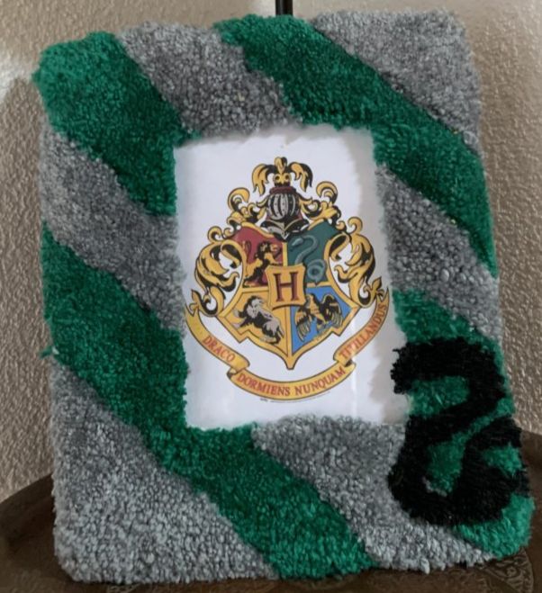 Cadre photo fait en tufting à l'effigie de la maison Serpentard de l'univers "Harry Potter"