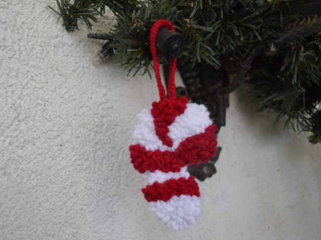 Ornement de noël à accrocher au sapin fait en punchneedle