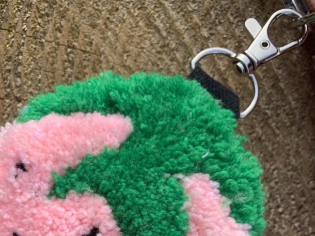 Taille assez grand, qui peut aussi se porter en accessoire de sac comme montré sur la photo.