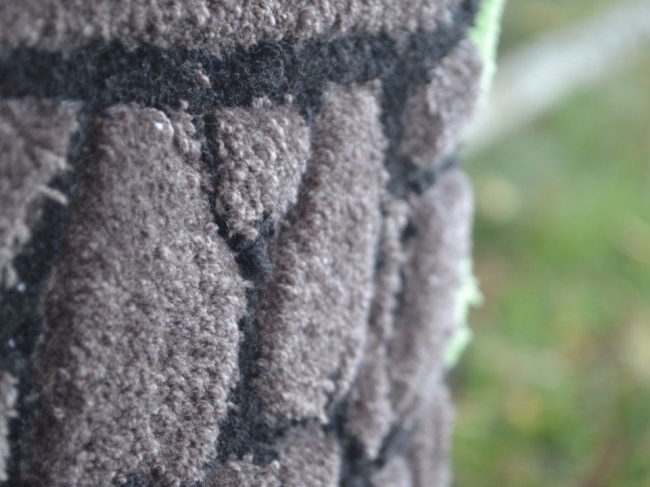 Finition arrière avec grip et ruban de bordure, en laine acrylique