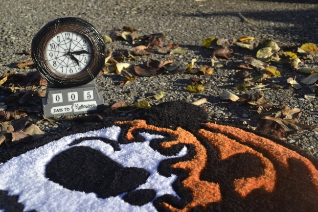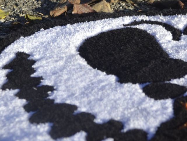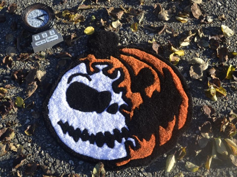 Tapis fait en Tufting  inspiré du personnage de Jack Skellington, moitié citrouille moitié squelette  du film "L'étrange noël de monsieur Jack"