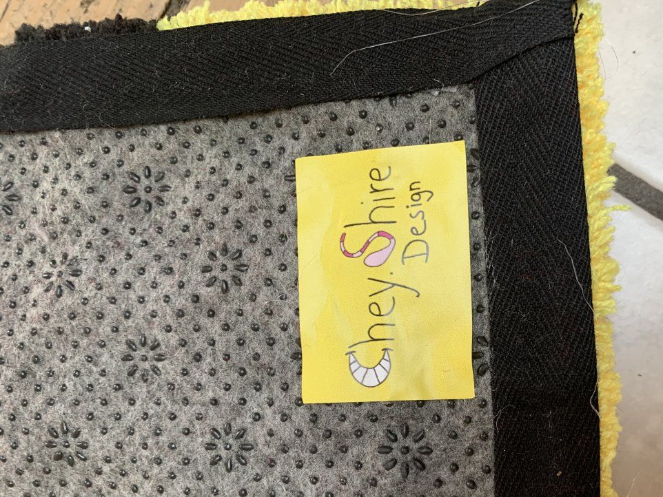 Finition arrière avec grip et ruban de bordure, en laine acrylique
